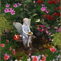Скульптура ангела в цветах