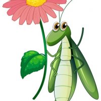 Green-bug-holding-pink-flower-white-background 1308-71212