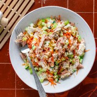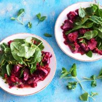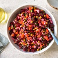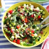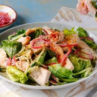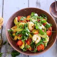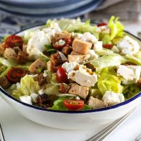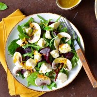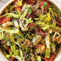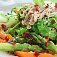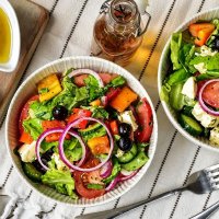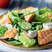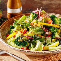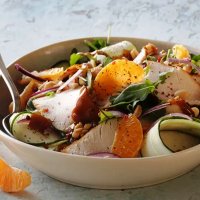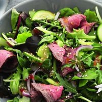 Зеленый салат с шампиньонами, сыром и апельсиновой заправкой