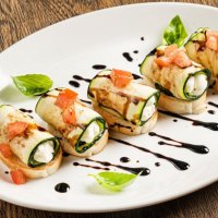 Оладьи из кабачков, запечённые со сметаной+помидорами+сыром