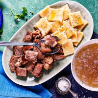 Отбивные из говядины - под золотистой черепицей из картофеля