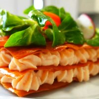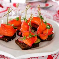 Канапе с красной рыбой, маринованной в хрене со свеклой