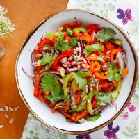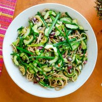 Салат из гречневой лапши с огурцами и имбирной заправкой