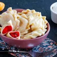 Свиная грудинка с жареным луком в томатном соусе c терияки