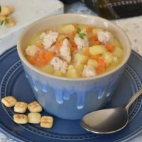 Chicken-бифштекс на шампуре с соусом ткемали и картофелем