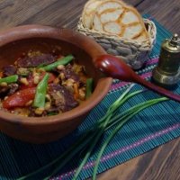 Рагу из бастурмы с фасолью, баклажанами и "д. пальчиками"