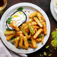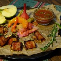 Крокеты из кролика в беконе с фенхелем, яблоком и розмарином