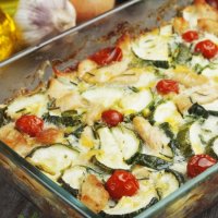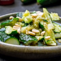 Тёплый салат из кабачков - с гренками и яркой заправкой