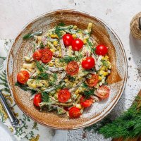 Салат с курочкой, сыром и кукурузой