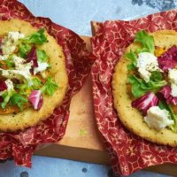 Тыквенная галета с зеленым салатом и моцареллой