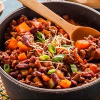 Чили с говядиной, фасолью и тыквой