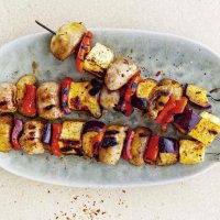 Шашлык - с колбасками, баклажанами, грибами и сыром халуми