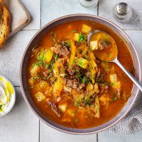 Рассольник с говядиной и рисом