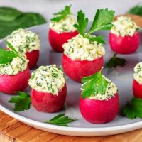 Редис, фаршированный яичной начинкой со шпинатом