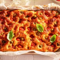 Фокачча - с помидорами черри и оливками