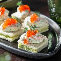 Канапе с творожным сыром, авокадо, красной рыбой и икрой