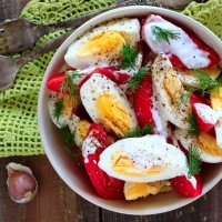 Салат с помидорами, яйцами и йогуртовой заправкой