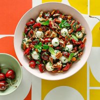 Салат с черешней, моцареллой и орехами пекан