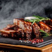 Свиные рёбра, запечённые в духовке с сидром и соусом барбекю