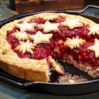 Пирог с розмарином, курицей, грибами и клюквой