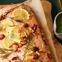 Кижуч, запечённый с соусом песто и миндалём