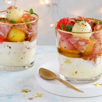 Ветчина, моцарелла, оливки и дыня на шпажках