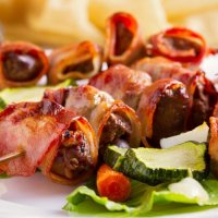 Запечённая куриная печень в беконе