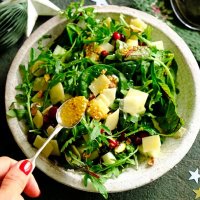 Зелёный салат со шпинатом, пармезаном и маринованной клюквой