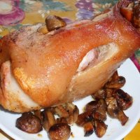 Рулька с жаренными грибами