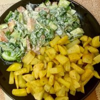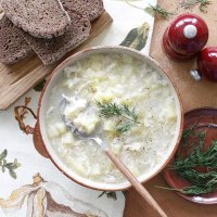 Уха из хвоста и головы горбуши с картошкой и рисом