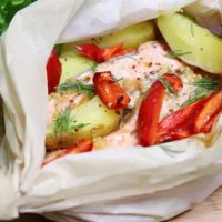 Стейки форели с картошкой
