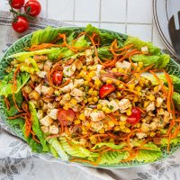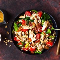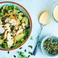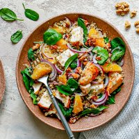 Салат с курицей, грейпфрутом и кедровыми орешками