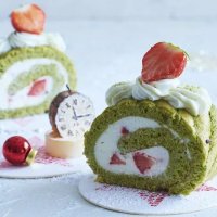 Зеленый рулет с творожно-сырным кремом и клубникой
