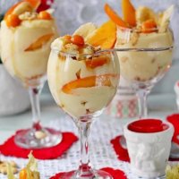 Трайфл с заварным кремом, бананом и хурмой