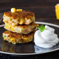 Картофельные котлетки с креветками и кукурузой