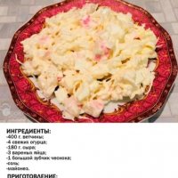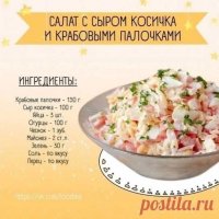 САЛАТ С СЫРОМ КОСИЧКА И КРАБОВЫМИ ПАЛОЧКАМИ