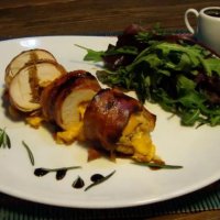Рулет из цесарки с чеддером и вялеными томатами под соусом