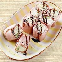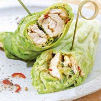 Рулетики из салата Айсберг с индейкой и острыми огурцами