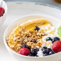 Банана-сплит с творогом и ягодами