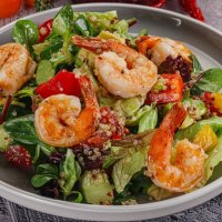 Тёплый салат с креветками и авокадо
