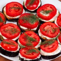 Жареные баклажаны - с чесноком, майонезом и помидорами