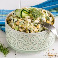 Салат со свежим огурцом, яйцом и зеленым горошком