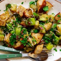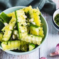 Тёплый салат из кабачков - с гренками и яркой заправкой