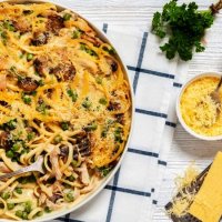 Тетраццини - запеканка с макаронами, индейкой и грибами