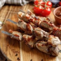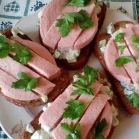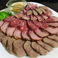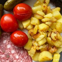 Красивый закусон картошечка колбаска помидорчик и огурчик
