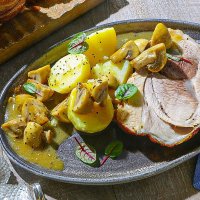 Картофель, запеченный в кокосовом молоке с листьями карри