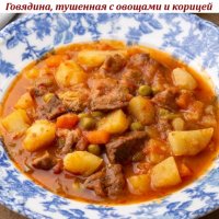Говядина, тушенная с овощами и корицей