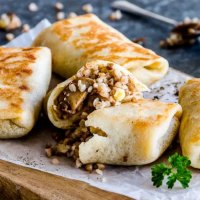 Постные блины с гречкой и грибами