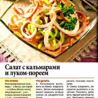 Салат с кальмарами и луком пореем
