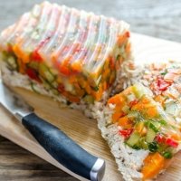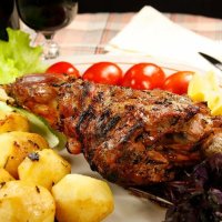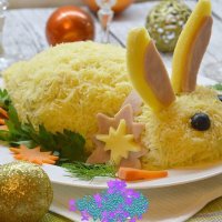 Салат (Кролик) с ветчиной, рисом, кукурузой и огурцом